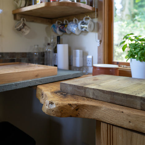 Georgie required an outside kitchen space for her glamping site. It had to provide shelter, but still be open enough to the elements to give you a sense of the great outdoors. The frame is built from Douglas Fir, the floor western red cedar and the canopy is a UVPC tent material.